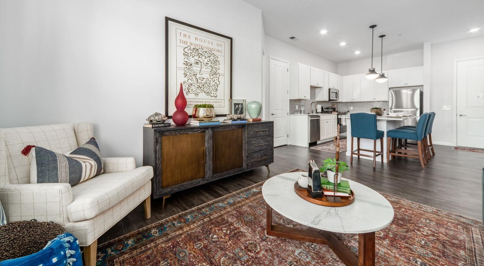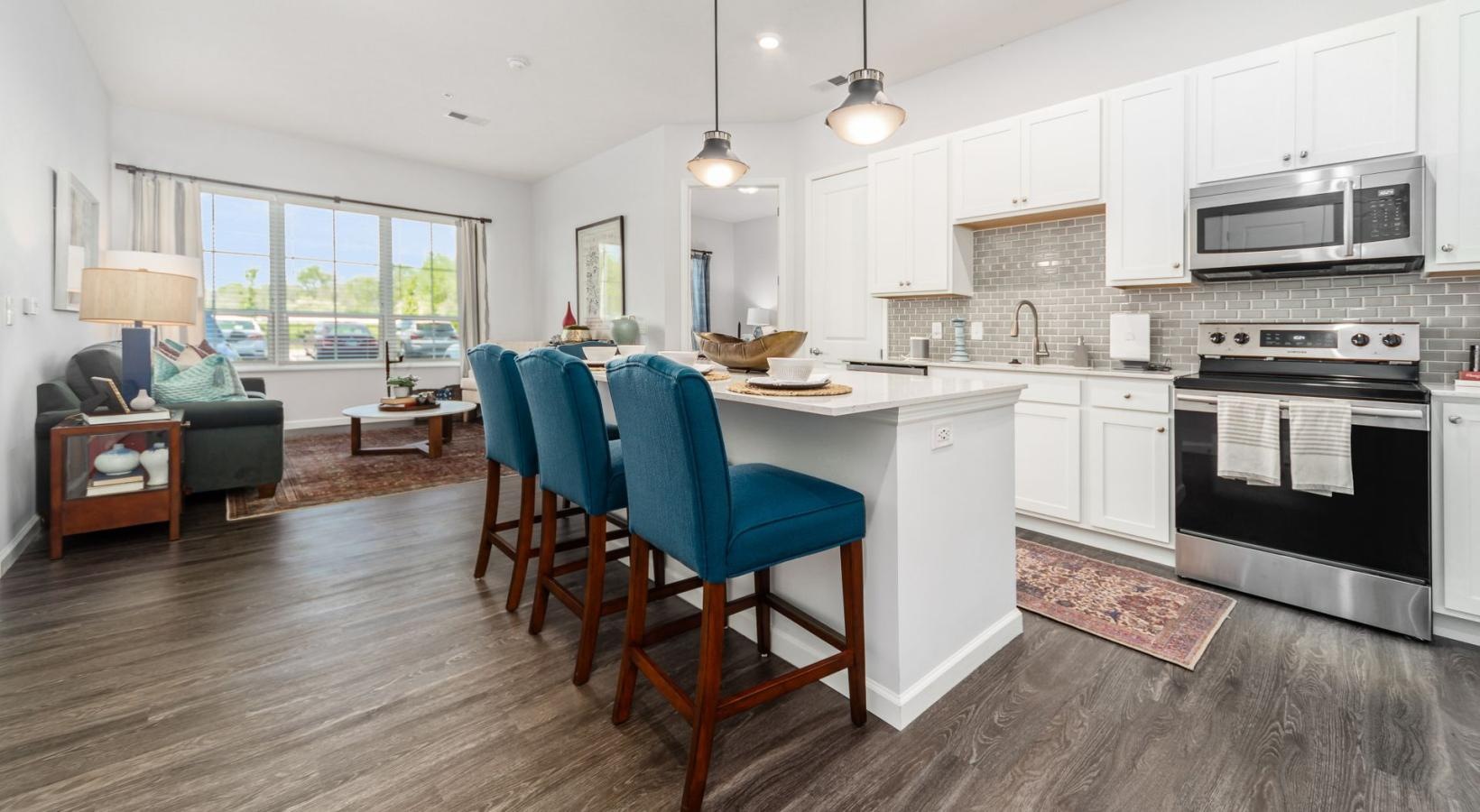 Explore Caldera House through our photo gallery and experience modern apartment living in Lewis Center, Ohio. View stylish one- and two-bedroom apartments featuring quartz countertops, stainless-steel appliances, open-concept layouts, and private patios or balconies. From contemporary interiors to inviting community amenities, every detail is designed for comfort, convenience, and pet-friendly living.